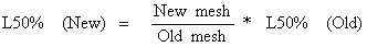 With this relationship, the increase in mesh size of Maldeco's Midwater Crystal Lake from 38 mm to 102 mm would result in an increase in optimum length to 59.1 cm, which is obviously wrong. A global increase in mesh size for midwater trawls, pair trawls and bottom trawls to 52 mm would give an optimum length of 30.1 cm.