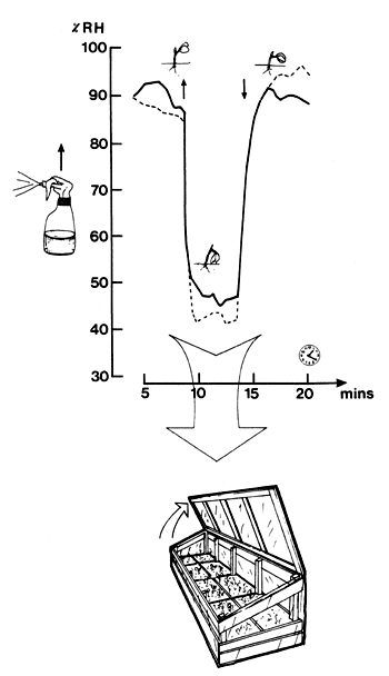 %RH=relative humidity (per cent). Immediately the poly-propagator is opened, the air becomes much drier, even when a hand-sprayer is used ----.