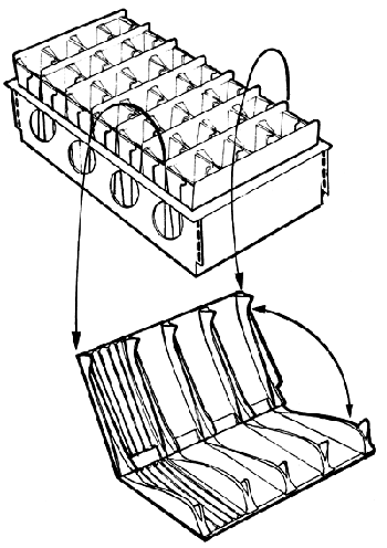 Any type can be used, including those made of polythene or bamboo but large ones take up too much space in the propagating bed. The best kinds allow free drainage and promote good root systems, such as root-trainers and biodegradable types. However, these have yet to receive extensive tropical tests, so use them first on a trial basis, filling them with a good rooting medium (A 35).
