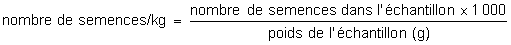 Le poids de 1 000 semences pures peut être converti en nombre de semences par gramme ou par kilogramme au moyen des formules suivantes: