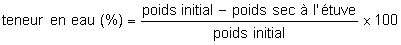 | Poids initial | Poids sec à l'étuve | Différence = teneur en eau | Teneur en eau exprimée en % du poids frais | |