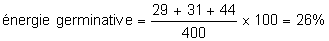 Le pourcentage du nombre total de graines susceptibles de germer qui germent pendant la période énergétique définie de cette façon est égal à: