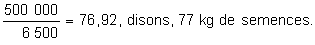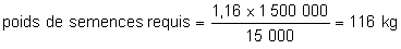 et la quantité de semences requise pour obtenir 1,5 million de plants serait de: