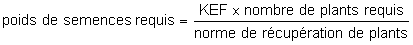 Le KEF, conjointement avec la norme de récupération de plants, peut servir à calculer le poids de semences requis pour obtenir un nombre donné de plants, conformément à l'équation: