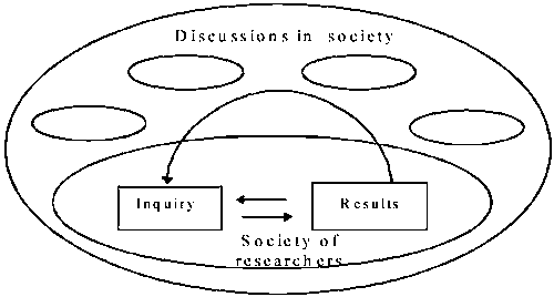 In order to approach these questions we first need to understand what research is. Karl Popper said science was characterized by being public, both in terms of being open to criticism and examination and in terms of being in pursuit of a common goal. We shall look closer at these characteristics from the point of view, that research is a common learning process (Figure 1).