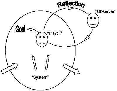 This kind of distancing, of taking an outside view of oneself, is similar to the kind of reflection involved in human conscious learning. Human self-conscious reflection is a mental ability to take a step out and to look upon oneself from the outside. Conscious learning involves a process of distancing, taking an outside view and using this view in later action (Figure 2).