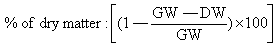 Pod dry weight. The pods were weighed when green (green weight - GW) and then heater-dried at 105° C and weighed again, to obtain the dry weight (DW), which was subsequently expressed as a percentage of the total weight or green weight, using the following algorithm:
