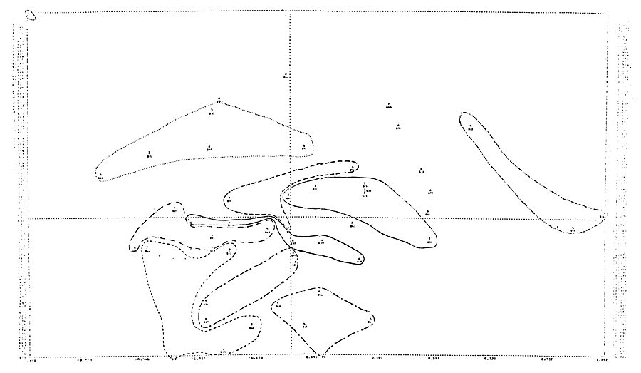 The analysis of the morphological similarity among individuals was made by means of the Analysis of Main Components, which is an ordering method for reduced spaces, applicable to sets of metric traits, and consists of analyzing and representing the individuals in a multi-varying chart having as many axis as traits or descriptive characters available.