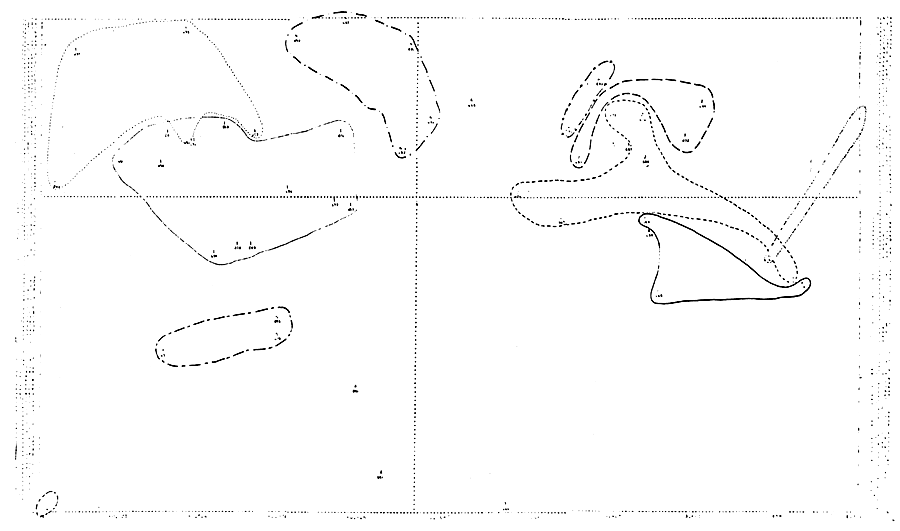 A number of quantitative data may be obtained with this method regarding the value of the projections derived, to outline the relations among traits as well as relationships among individuals.