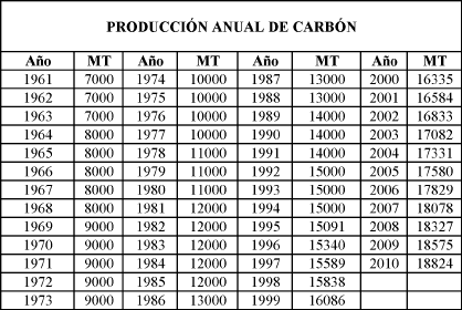 carbón) aun no han sido elaborados.