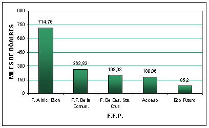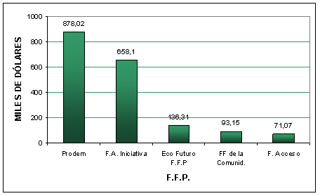 Son pocos los Fondos Financieros Privados (F.F.P.) que ofrecen crédito al sector forestal, el más importante es PRODEM con 0.87 millones (48%), seguido por el Fomento a Iniciativas Económicas con 0.65 millones (36%).