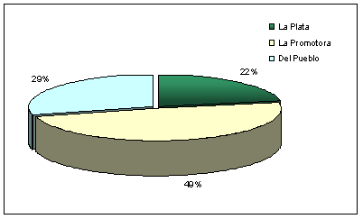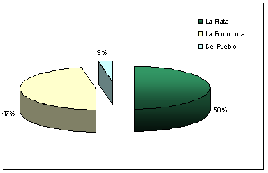 Como se observa en el siguiente gráfico son muy pocas las mutuales que otorgan financiamiento al sector forestal, la más importante es Mutual La Plata con el 50% de movimiento de cartera, seguida por Mutual La Promotora con el 47% y mutual del Pueblo con el 3%.