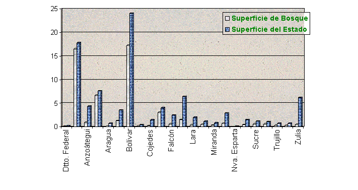 La superficie de cobertura vegetal en cada Estado se muestra en el gráfico 1.