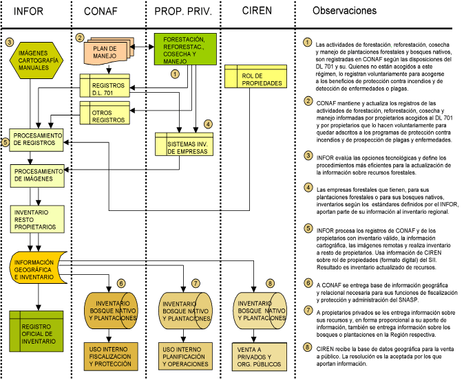 • Fiscalización: En aras de lograr una adecuada conservación de los recursos forestales y del medio ambiente, CONAF desarrolla una rigurosa fiscalización, especialmente en el control de los Planes de Manejo y la detección de cortas ilegales.
