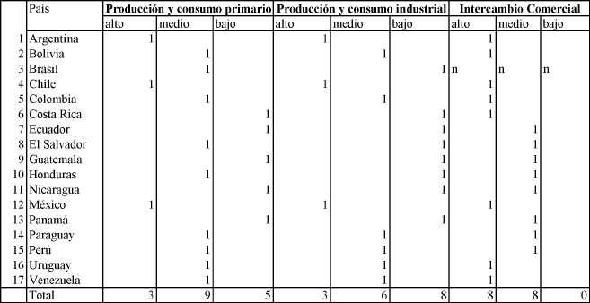 n: no produce; 1: si genera información; 0: no genera