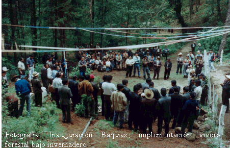 En agosto de 1998, el Instituto Nacional de Bosques a través del Proyecto Bosques Comunales, inicia una proceso de atención en la Parcialidad Baquiax, con el objeto de incorporar su bosque comunal a Manejo Forestal, las actividades se desarrollan en el marco de la Política Forestal Nacional y de la Estrategia de Forestería Comunitaria del INAB. Dicha estrategia fue formulada con el apoyo del Programa de Bosques, Arboles y Comunidades Rurales de FAO.