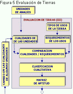 Luego de identificar y caracterizar las unidades de análisis, se procede a definir su aptitud biofísica y viabilidad socioeconómica utilizando la metodología de Evaluación de Tierras de FAO (1976, 1994), generando una matriz inicial de aptitud e informaciones asociadas para las unidades por cada uno de los tipos de uso evaluado.