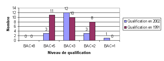 Figure 1: Qualification des enseignants de l'ENEF de Mbalmayo en 1991 et en 2002 (Foudjet et al. 2002)