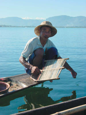 Inle Lake opposite is leased as two fisheries at K60 000 and K40 000. The current lease holder is the Myanmar Fisheries Federation (MFF). The Federation sub-leases to at least 300 fishers raising an income for MFF Shan State of K200 000
