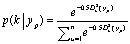 The posterior probability of observation yp belonging to the class k is, under the multivariate normal assumption, obtained from equation (2):