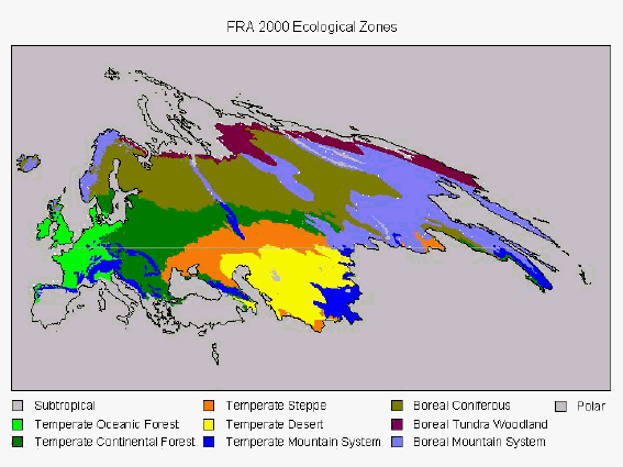 Figure 2: FRA 2000 ecological zones for Europe and CIS (2,268,966-km2).