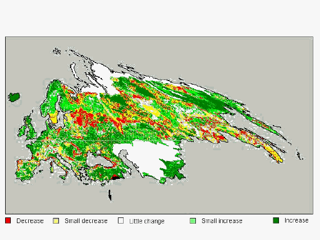 2. Optimisation using changes in 1-km AVHRR data (or 250-m MODIS data) over a 10-year time period.