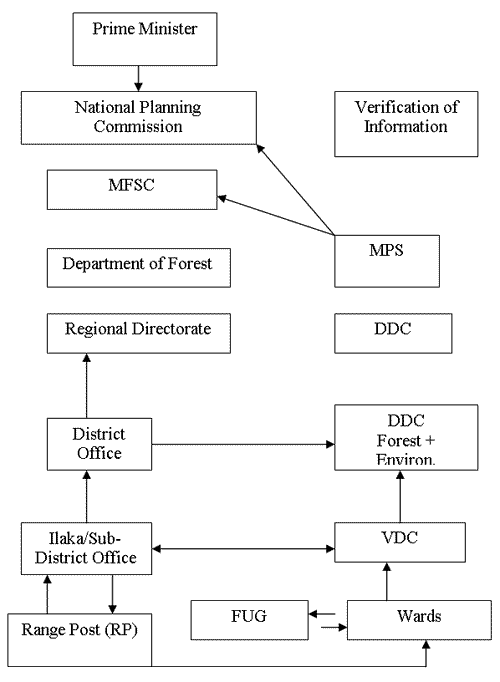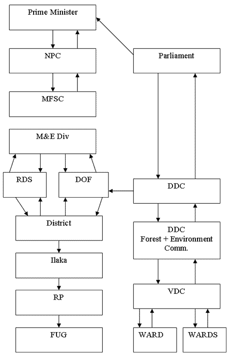 Planning becomes hypothetical unless it is tied up with monitoring mechanism. There is no other alternative except participatory monitoring mechanism. With local Governance Act and regulation enforced, it is high time to institutionalize the monitoring system with local governance involvement by distinctly specifying their role in forestry program as a whole and participatory forestry program in particular. Government has recently conceptualized a benefit sharing mechanism even in government managed forest whereby some royalties generated from sale of timber will go to local governance bodies so that they may show interest in forest management. Even in national parks and wildlife reserves, community participation program has already been initiated in buffer zone areas. These buffer zone areas serve as shock absorber between wildlife and the people living in the vicinity of the parks and reserves. Community development programs have already been initiated in the vicinity of the parks and reserves to fulfill the needs of the local people so that they will be obliged to the parks and reserves, and contribute in protection of wild life and bio-diversity.