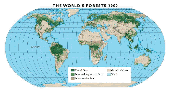 Figure 2. Global forest cover map produced for the Food and Agriculture Organization’s Forest resources Assessment 2000 Program.