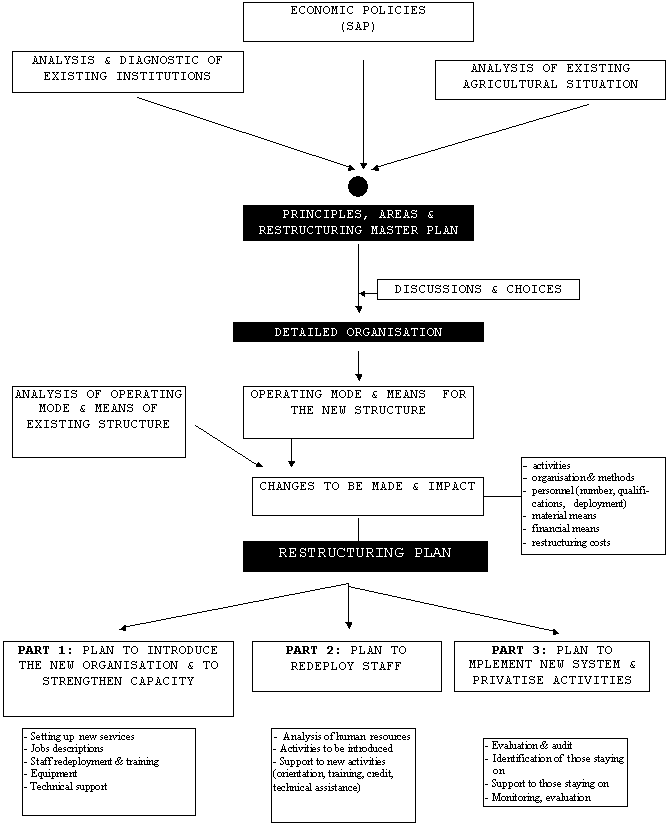Restructuring proposals should be widely discussed at all levels before submission to the relevant authorities. It is absolutely critical that all parties (farmers, civil servants, development partners, etc...) receive full information and that they participate actively in discussions: