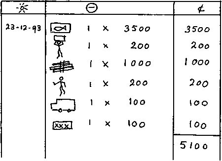 (Taken from Simple Book-keeping and Business Management Skills published by FAO.) Symbols and pictures are used to overcome literacy problems.