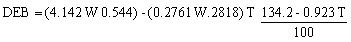 donde: T es la temperatura ambiente media mensual en °C y W es el peso fresco del ave en gramos; en este caso se emplearon los pesos promedios de aves capturadas durante los censos (Cuadro 1).