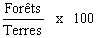 | Régions | Terres forestières | Forêts (estimation) | Superficies des terres | ![]() % | |||