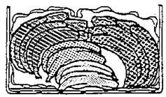 Hands of bananas, after undergoing washing to remove latex and perhaps spraying with fungicides, are typically packed into cardboard containers lined with polyethylene. The following illustrations depict one method of filling a container with the fruit in order to ensure less damage during transport. Note that the polyethylene liner is folded up over the bananas before closing the box.
