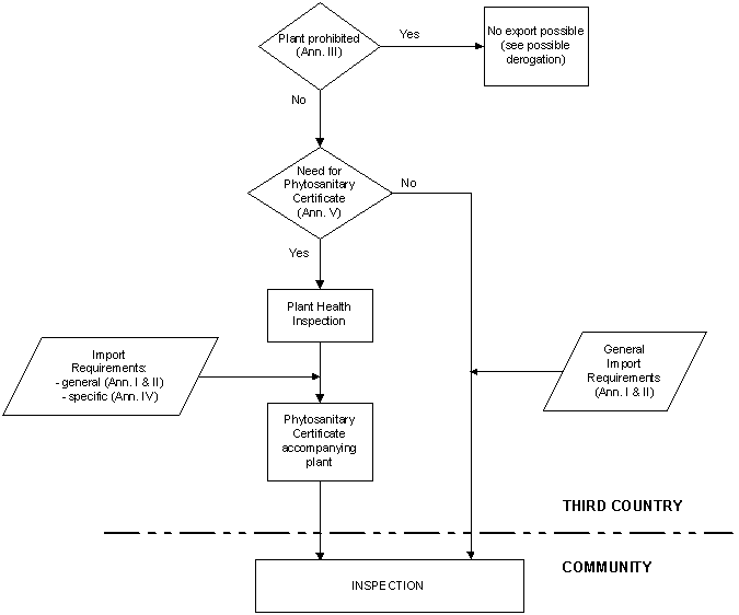 These import requirements are summarized in the flow chart below, which gives non-Community countries wishing to export edible plants or plant products to the Community an overview of the steps and various options involved in complying with the Community rules on plant health.