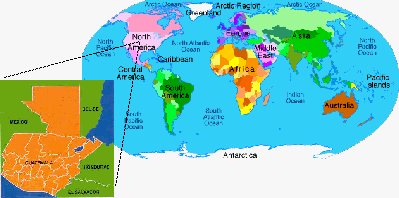 Guatemala is located in Central America just below Mexico (Figure No 2). The country is surrounded by the Pacific Ocean in the south, El Salvador, Honduras and Belize in the east and a short strip facing the Caribbean part of the Atlantic Ocean. Guatemala covers 108,889 Km2 where about 25% is covered by forest. Its population is about 12 millions. It is characterized by a diverse topography with flat lowlands in the north and the Pacific cost and very mountainous central-south leads to a varied climate and vegetation.