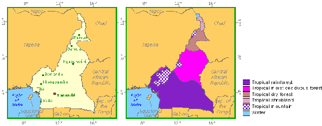Figure 5: Maps of Cameroon: localisation (left) and global ecological zones (right).