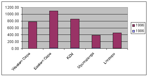 Reported numbers of transgressions for recent years are collected at Forest Management Units by some regional foresters but have not yet been aggregated at national level to indicate national trends. However, an example of the type and extent of forest transgressions in South Africa was captured in the annual report of 1986/87 in compliance with the requirements of the Environmental Conservation Act (Act 100 of 1982). According to this information, a total of 1 587 transgressions were made in 1987, the highest of which was unlawful grazing. Indications are that this pattern still exists to date. The National Forest Act (NFA no84 of 1998) requires that the number and type of transgressions be reported at national level for the purpose of reporting and policy revision to address negative trends. Some measures that have been taken to address illegal transgression, uses and access are the issuing of licences and exemption for forests goods and services required for commercial and domestic purposes respectively to comply with the requirements of the Act.