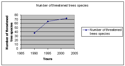 Fig.4: Temporal changes in the number of threatened tree species from 1990 -2002