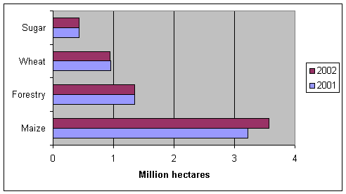 The number of threatened tree species has increased by 49% from 1990 to 2000 suggesting that either very little recovery plans are being implemented or the conservation status of these species is poor. The Criteria and Indicator System for Sustainable Forest Management that is currently being implemented require that forest management plans be drawn and recovery plans for species at risk of not maintaining viable breeding population be implemented. There has been no significant change in terms of protection and conservation of forests from 1986 to 2000. For example, the 1986/87 annual report by the Department of Environment Affairs indicates the area under protection by the state as 4 651 901 hectares (national parks, provincial reserves) as opposed to 4,986 114 ha in 2002, a minimal increase of 6.7% over 16 years. This seems to be the pattern even for the total area under any other formal protection where only 6.4% of the land was protected (e.g. conservation for multi-purpose 1 198 879 ha, Private conservation areas 2 067 574 and sate owned conservation area 4,651,905 ha) in 1987 and a similar percentage is being quoted in 2000.