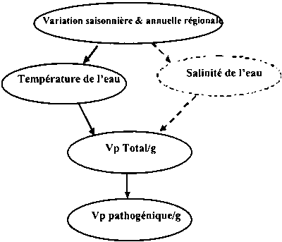 · Incidence/fréquence des bactéries V. parahaemolyticus pathogènes dans l'eau et dans les coquillages.
