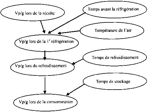 FIGURE 6.10: Représentation schématique du module post-récolte pour l'évaluation de l'exposition liée à Vibrio parahaemolyticus dans les poissons à nageoires consommés crus.