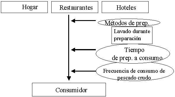 FIGURA 6.11 Representación esquemática del módulo de preparación y consumo para la evaluación de exposición a Vibrio parahaemolyticus en pescado consumido crudo.