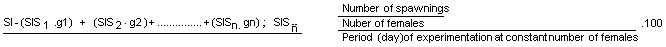3 Negative difference between number of fertile eggs spawned and of eggs hatched due to errors caused by counting method.