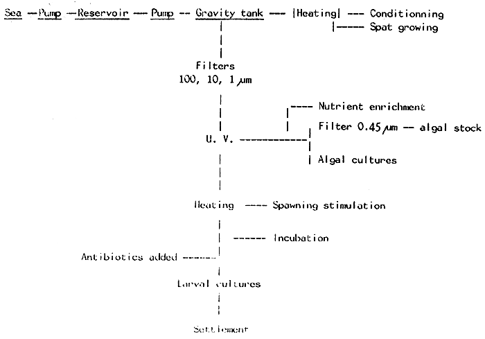 Hatchery bivalve rearing on a commercial basis started in the 60's, and in some way this can be related to the publishing of the following documents: LOOSANOFF & DAVIS (1963), WALNE (1963, 1964, 1965, 1966) and IMAI (1966), describing culture techniques, water processing, conditioning, phytoplankton production, etc…