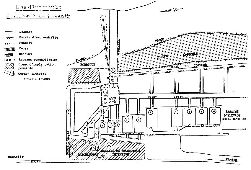 Afin d'utiliser également Monastir, comme centre local de production et distribution de coquillages, des radeaux conchylicoles sont nécessaires. Ces radeaux (4m × 4m) au nombre de 20, supportant chacun 200 cordes seront placés dans la partie surcreusée centrale.