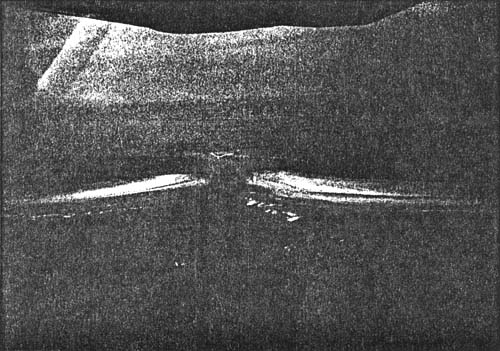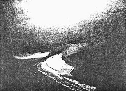 - la photographie aérienne qui orne le dossier I, prise de trois quarts le même jour et qui met particulièrement en valeur l'ensablement de la passe côté lagune et la menace que fait peser cet ensablement intérieur sur la pérennité de l'ouverture, les overtures précédentes s'étant petit à petit obturées dans les mêmes conditions.