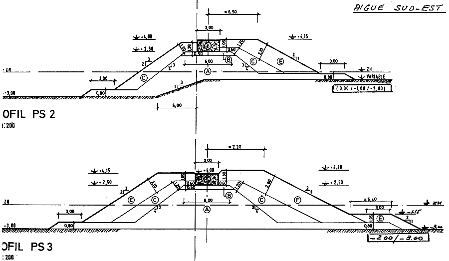 A noter également que la structure des digues à retenir est celle qui a été préconisée dans le PROJET D'EXECUTION par HP/HM et qui résulte de l'essai réalisé sur MODELE REDUIT, et il convient à cet égard de se reporter aux pièces № 6 et № 7 du dossier de ce projet.