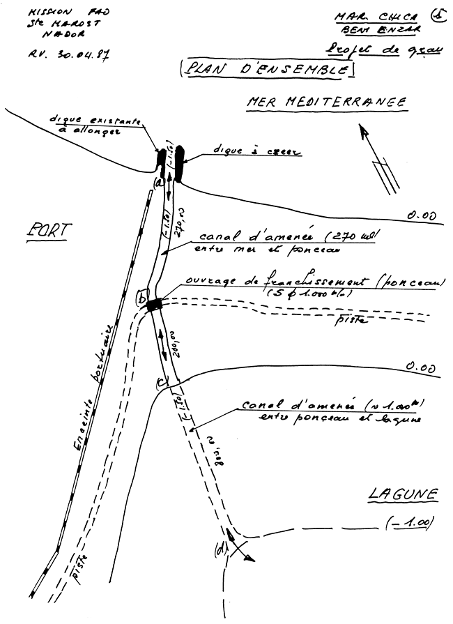 L'aménagement projeté concerne la réalisation d'une communication entre la lagune et la mer, baptisée “GRAU” de BENI-ENZAR.