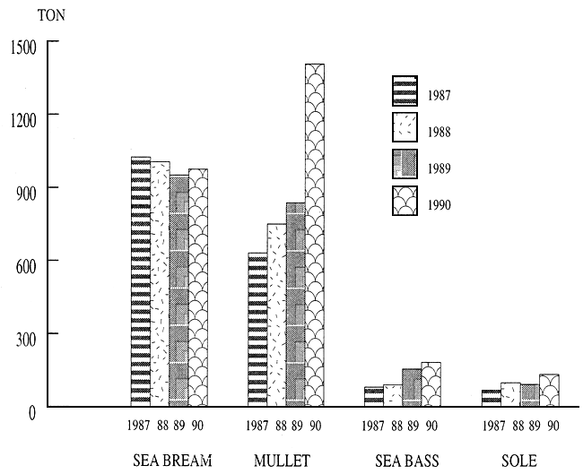 Most of the landings from lagoons consist of the species of Mullet, Sea bass, Sea bream and European eel (Table 2).