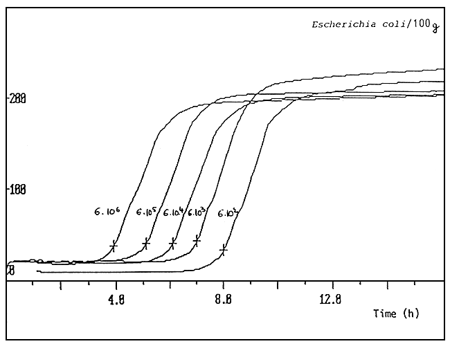 In recent years, instrumental (generally automated) techniques of analysis have been proposed for these purposes, including the conductance measurement technique which would seem best suited for routine E.coli counts in shellfish. This method is based on the principle that when bacteria are actively growing in a culture medium they produce metabolic charged and products and thus cause a variation in electrical conductance (conductance signal). This variation provides a measurement of bacterial growth since it is proportional to the change in the number of bacteria in the culture. Moreover, the time at which growth is first detected, referred to as detection time (DT), is inversely proportional to the log number of viable bacteria in the initial sample. DT can thus easily be converted into bacteria counts.